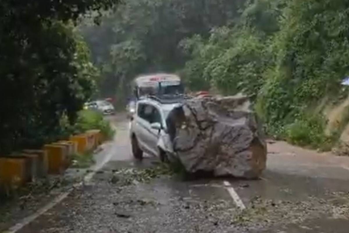 The torrential rain that has been falling for the last two days in the state has caused widespread damage especially in the mountains. A taxi vehicle near Aam Parao on Haldwani road of the city got hit by a boulder that fell from the hill. Fortunately, the taxi driver and the passenger narrowly escaped in the accident. The police have sent the two people who were slightly injured to Haldwani for treatment.
